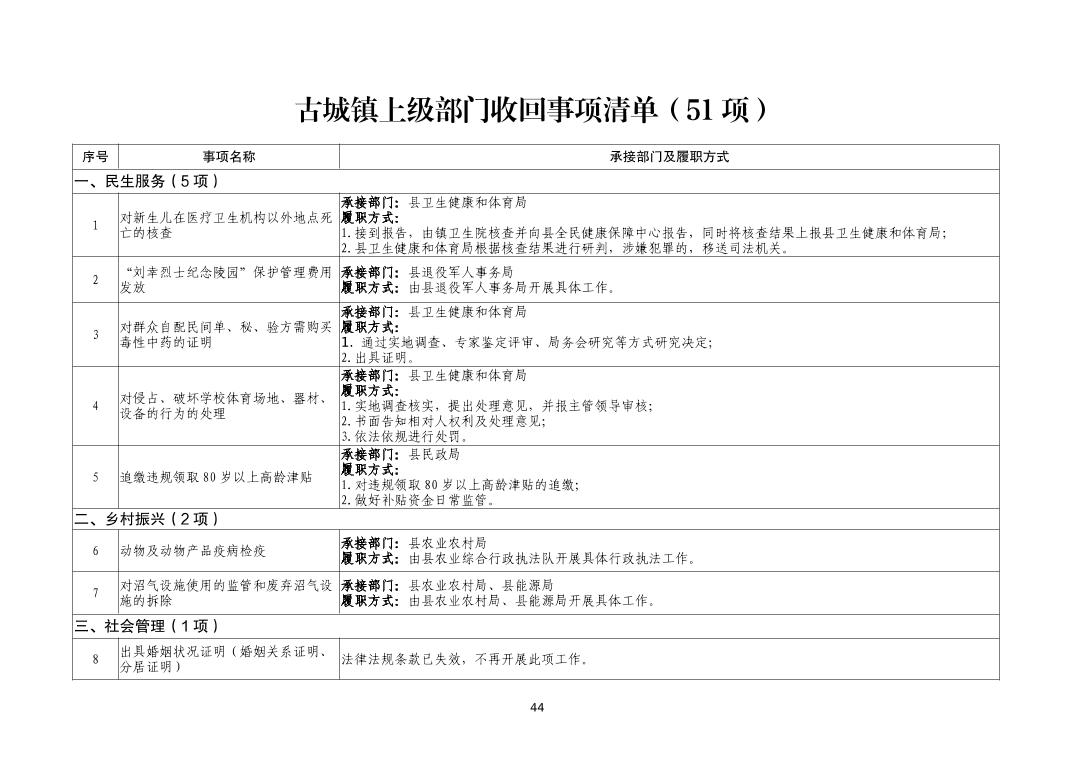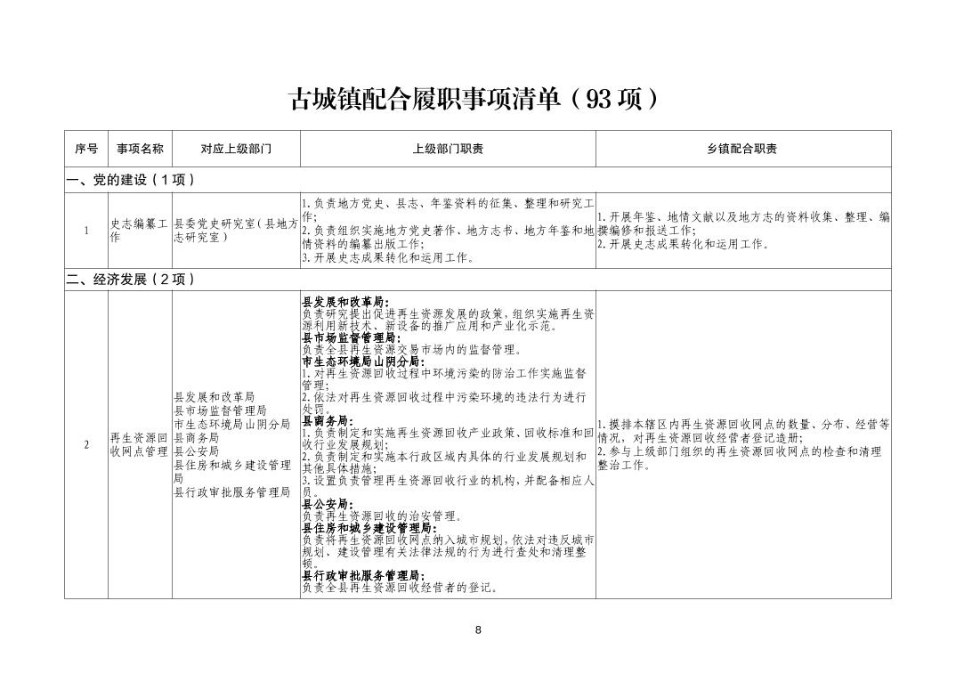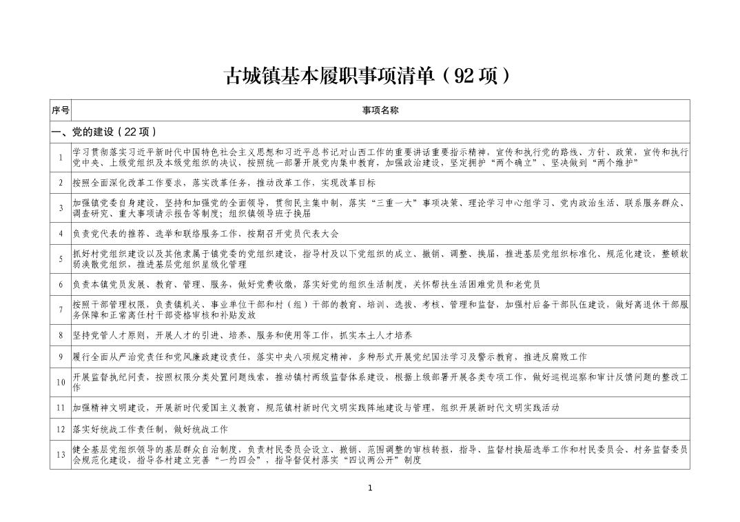 古城鎮履職事項清單