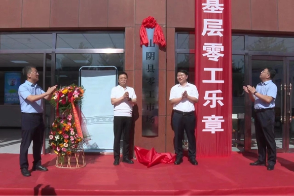 高瑞龍和市人社局黨組書(shū)記、局長(zhǎng)李全勝為“山陰縣零工市場(chǎng)”揭牌。