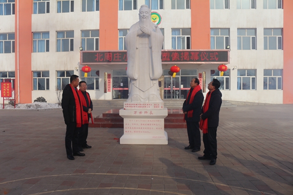 12月22日,北周莊小學舉行孔子塑像揭幕儀式。縣政協主席郭兆文,朔州市原農委主任郭明棟,縣委常委、人武部政委曹世強,縣政協副主席殷占東出席活動并為孔子塑像揭幕。